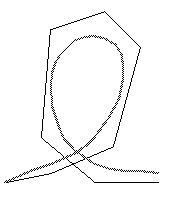 Laban (1966, pp. 46-47) compares a movement path to the opening of a fan in which the ribs or spokes of the fan are analogous to the spatial accents or peaks along the pathway. A path can be performed in a broken or angular way by giving a special accentuation thus creating imperceptible pauses at each peak, or it can be performed smoothly in a continuously curving pattern. This description corresponds to the method of deriving curved paths from polygonal representations in the trajectory formation model (see IIIB.32).