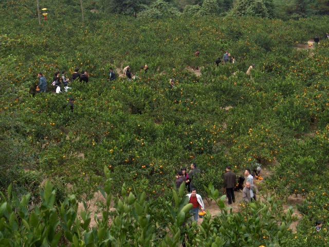 Picking oranges (nectarines) in Linhai China (2010)